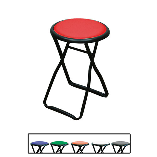 | 折りたたみタイプのスツールです。 軽量でスタンダードなチェアです。 座面カラーはブルー、グリーン、レッド、ホワイト、ブラックの全5色からお選びいただけます。 |