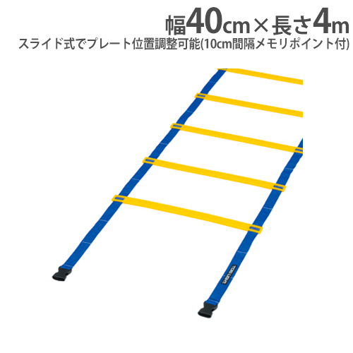 | スポーツ選手の基礎トレーニングの定番! 屋内外兼用タイプのラダーです。 早いステップや敏捷性を養うトレーニングはもちろん、介護予防の歩行運動などにもオススメです。 プレートはスライド式で調節が可能で、ベルトには10cm間隔の目盛が付いています。 プレートは柔軟で割れにくいPE樹脂製です。 バックルは取り外し可能でプレートの入れ替えも楽に行えます。 教育施設やスポーツ施設で活躍します。 |