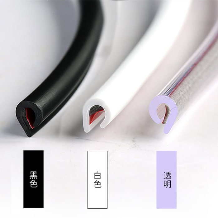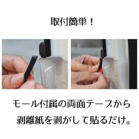 モールに両面テープが内蔵されているので、保護テープを剥がしてドアエッジに挟み込むように取り付けるだけ。カラーはブラック、ホワイト、クリア(透明)の3色からお選びいただけます。