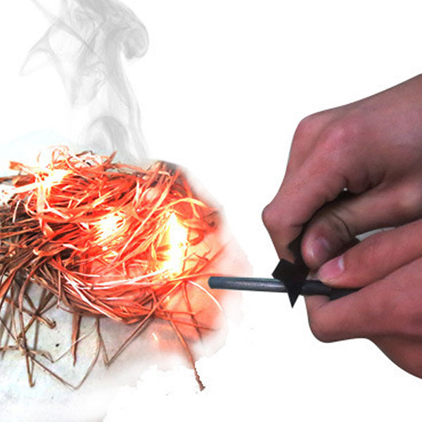 マグネシウム芯の側面を削って燃えやすい物の上にかける
