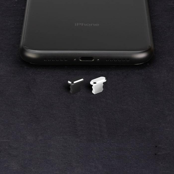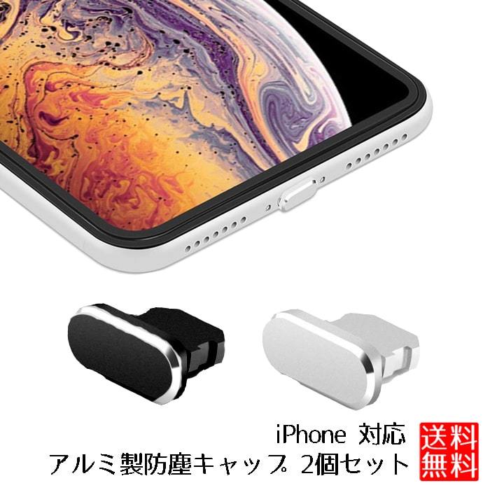 iPhone 対応 アルミ 防塵キャップ 2個セット ホコリ 汚れ 保護キャップ ブラック シルバー