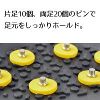 すべり止めラバーはもちろん、片足に10個、両足で20個のピンがついているので、
