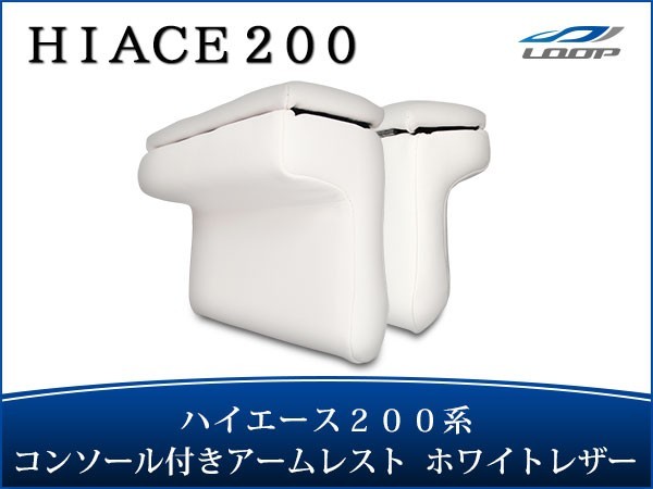 ハイエース レジアスエース 200系 S-GL アームレスト 開閉式 コンソール付き 左右セット ホワイトレザー H16〜
