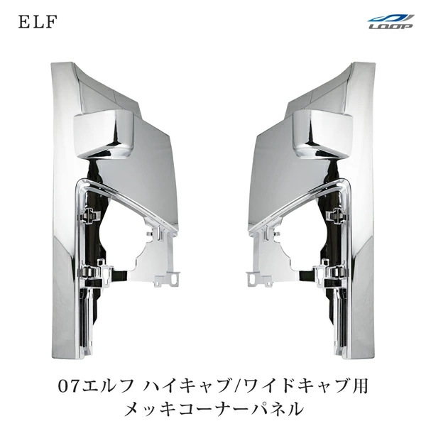 07y- エルフ ハイキャブ ワイドキャブ用 メッキコーナーパネル 純正タイプ 左右セット H19.1〜