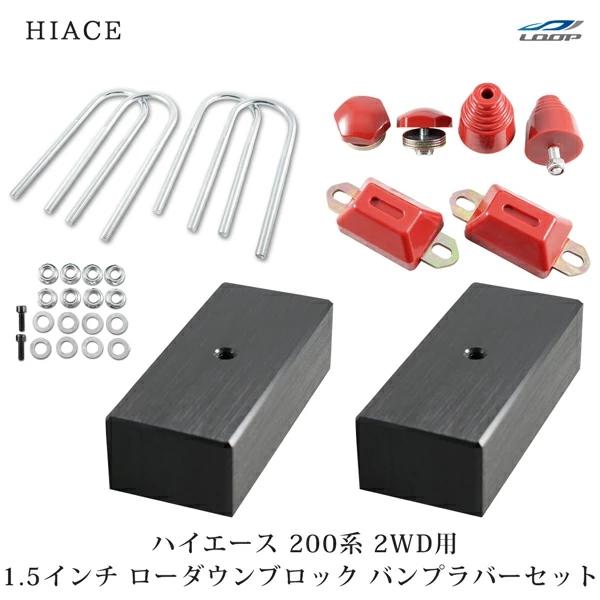 ハイエース 200系 アルミ製 ローダウンブロックキット 1.5インチ(38mm)2WD バンプストップ リバウンドストップ セット H16〜