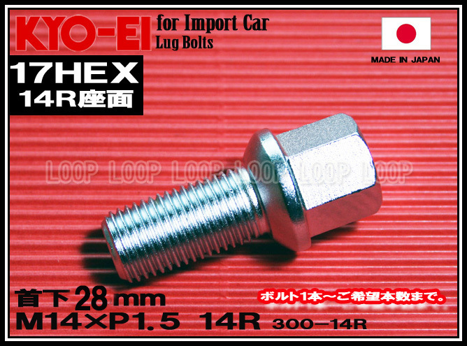KYO-EI ラグボルト 14R座 M14×P1.5 17HEX メッキ 全長49mm首下28mm 300-14R 協永産業