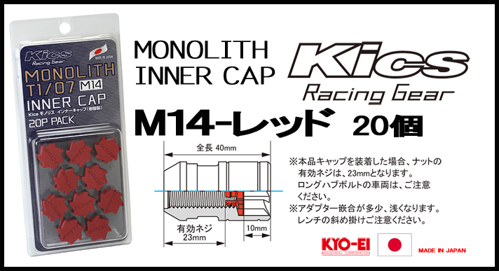 Kics MONOLITH モノリスインナーキャップ M14 レッド CMF4R