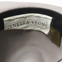 JANESSA LEONE ジャネッサレオン アメリカ製 ウールフェルトロングブリム L(内周約59cm) グレー レザーリボン 帽子