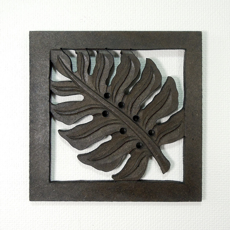 バリの伝統的なモチーフであるモンステラの葉を、流れるようなラインで表現しました。