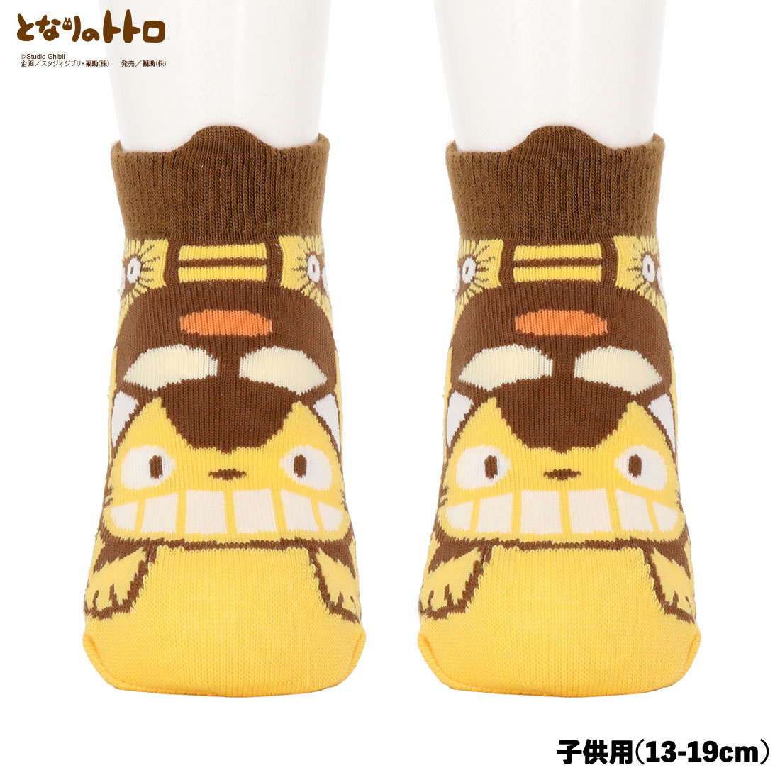 (キッズ13-19cm)となりのトトロ ネコバス柄 ソックス 子供用 スニーカー丈 スタジオジブリ 福助 靴下 D1PK