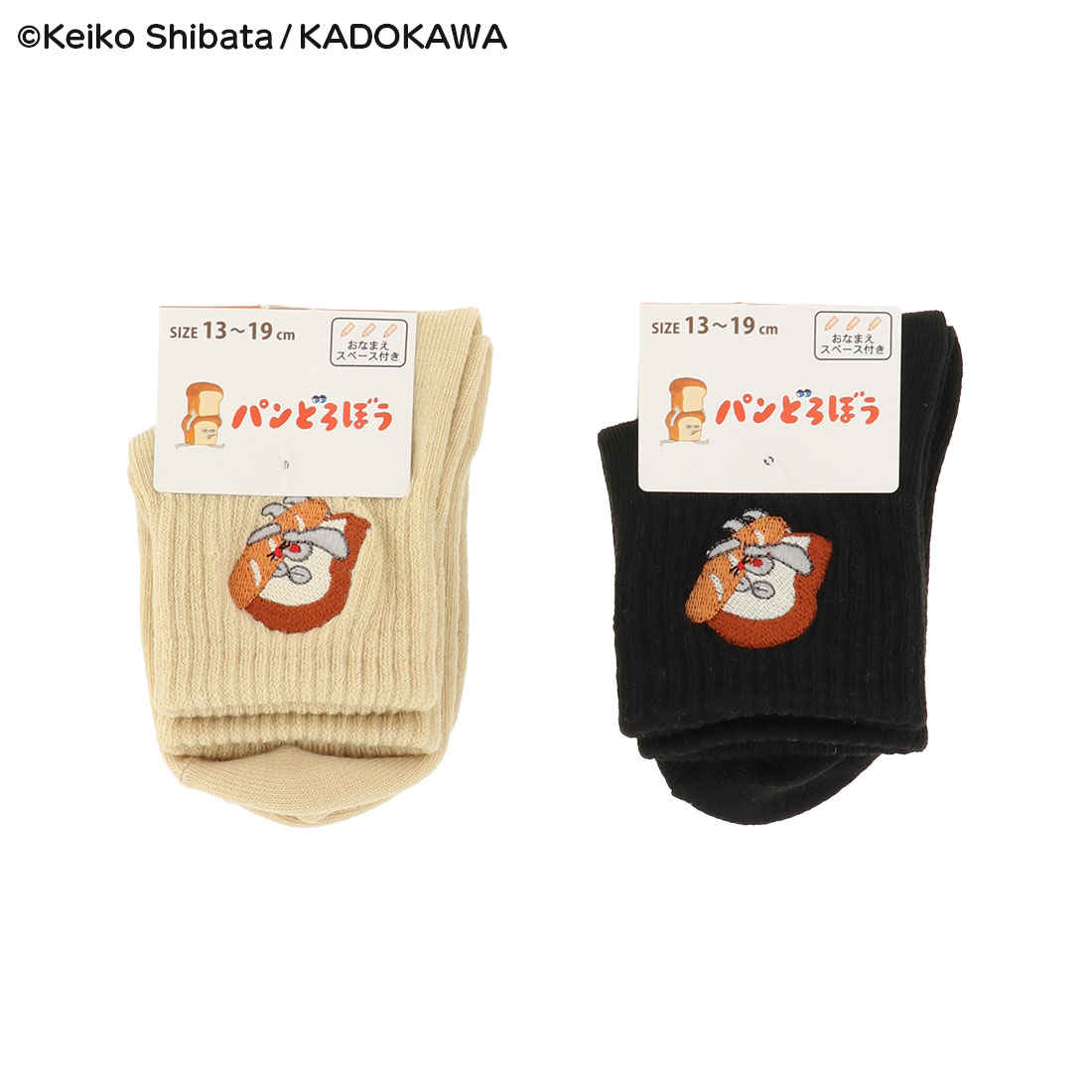 大人気絵本「パンどろぼう」の刺繍入りキッズサイズのクルー丈ソックスです。