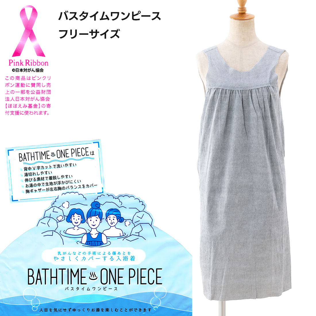 バスタイムワンピース 傷あとをやさしくカバーする入浴着 フリーサイズ グレー 使い切り レディース 産学連携