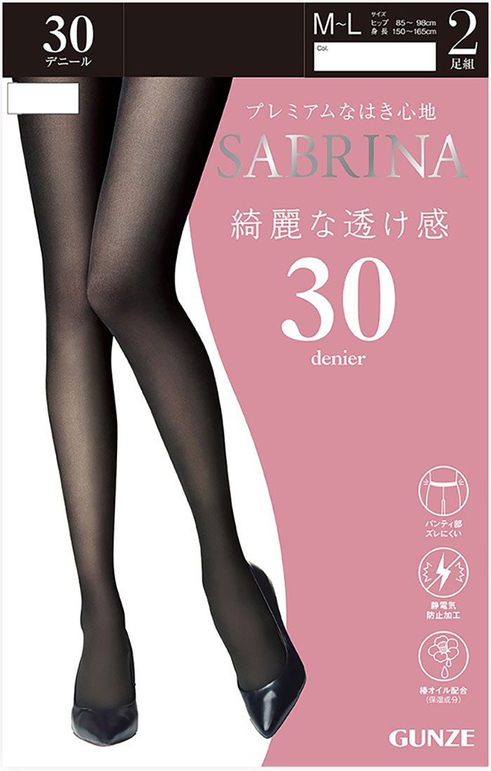 (2足組)SABRINA 30デニール タイツ 綺麗な透け感 M-L・L-LL 黒 グンゼ サブリナ レディース プレミアムな履き心地 SBG11A