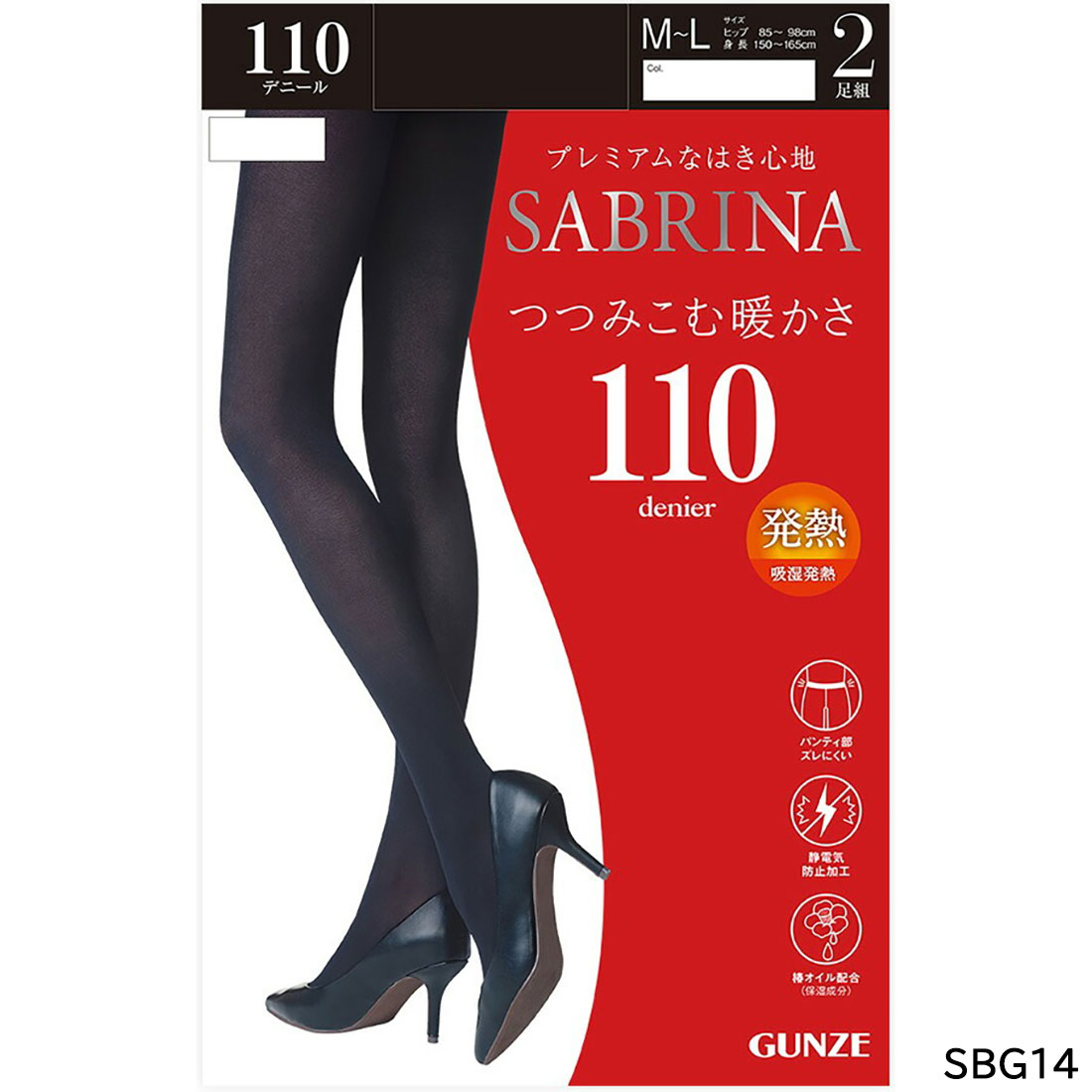 (2足組)SABRINA 110デニール タイツ つつみこむ暖かさ M-L・L-LL 黒 吸湿発熱素材 グンゼ サブリナ レディース プレミアムな履き心地 SBG14A
