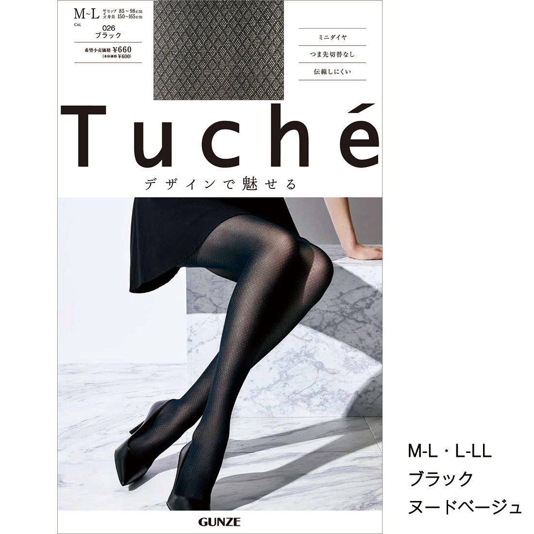Tuche 伝線しにくい ミニダイヤ柄 ストッキング M-L L-LL 黒 ベージュ レディース シアータイツ グンゼ トゥシェ TH902G