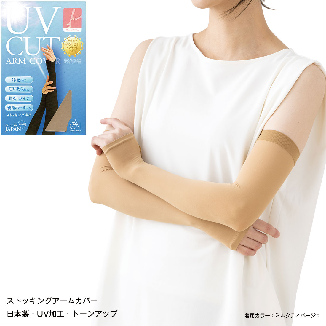 UVカット ストッキングアームカバー 冷感加工 22デニール相当 黒・ベージュ 日本製 親指あき ロング丈 オーアイ工業