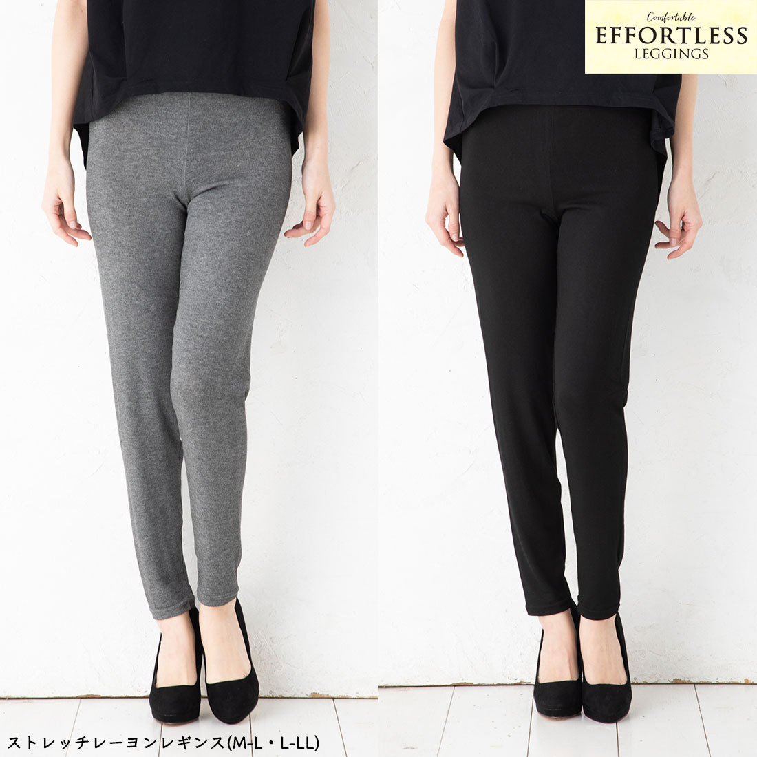 EFFORTLESS ストレッチレーヨンレギンス 10分丈 やさしく伸びやか M-L・L-LL 黒 グレー レディース D1PK