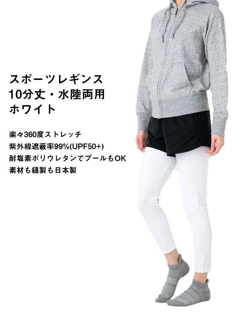 (送料無料) スポーツレギンス 10分丈 ホワイト 白 (UVカット率99% UPF50+)(M-L)(らくらくストレッチ素材)(日本製) レディース スパッツ