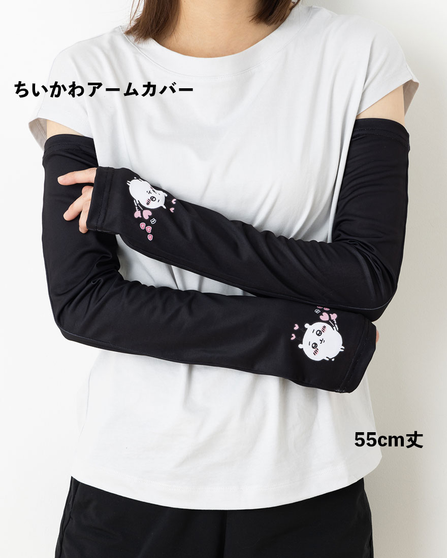 ちいかわ ハート アームカバー 55cm丈 紫外線遮へい率90%以上 黒 レディース
