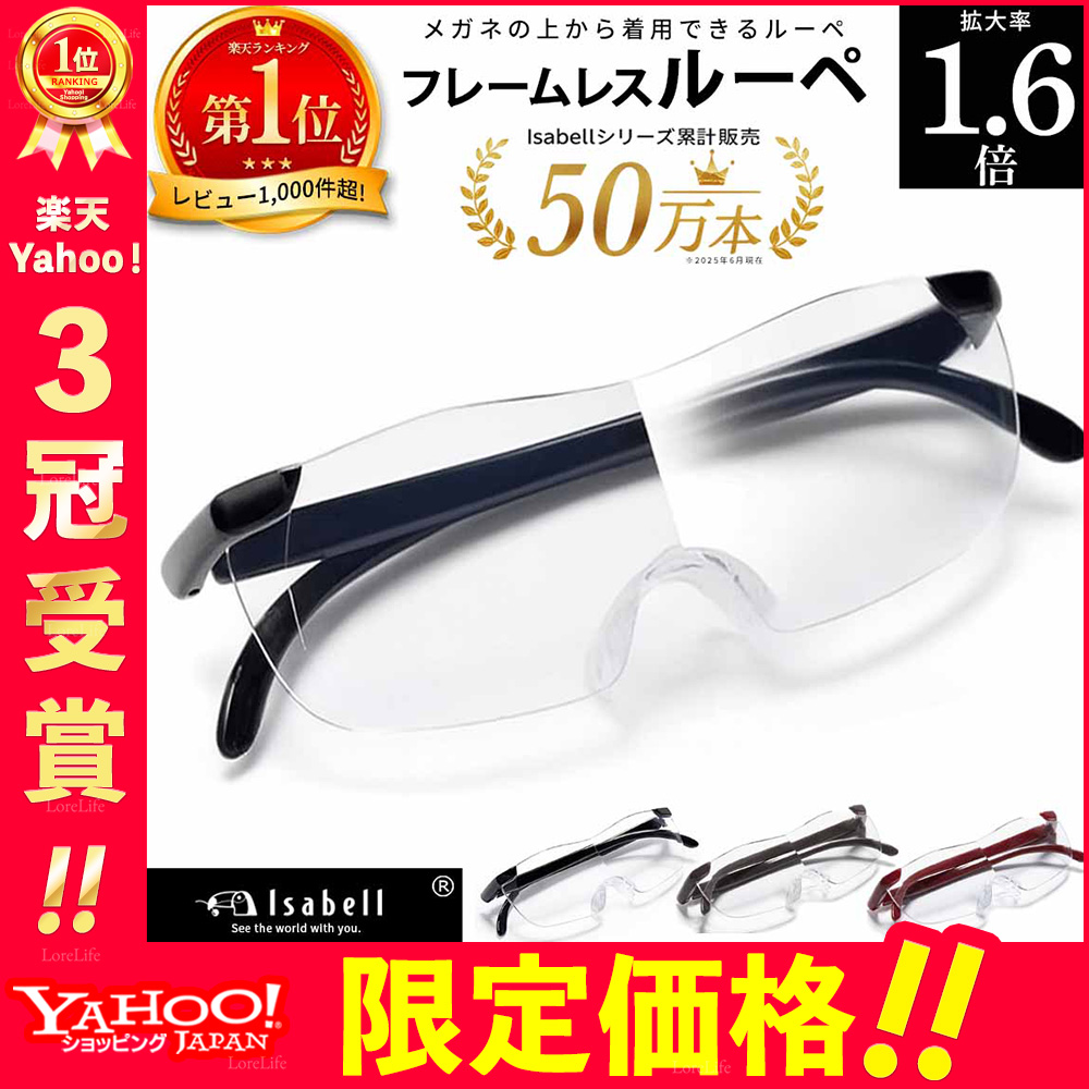 拡大鏡 ルーペ おしゃれ メガネ ブルーライトカット メガネ型ルーペ メガネ型拡大ルーペ 1.6倍 読書用 高性能 フレームレス ケース付き