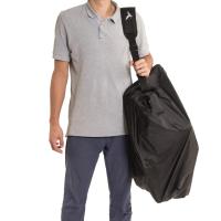 シートポストやハンドルポストに取り付けすることができる簡易輪行カバー。肩掛けストラップ付き。巾着のように底をひもで絞って使用します。