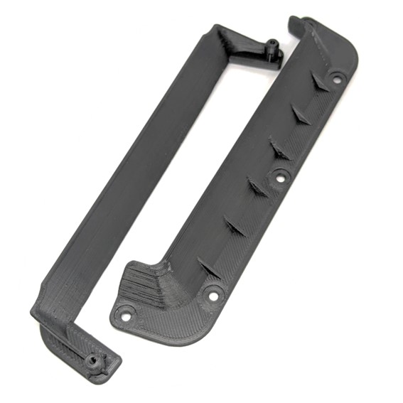 ボディ下面にあり見えない部品ということで、製造方法を下げるFDM工法で製造しております。飛び石等で破損も想定されます。