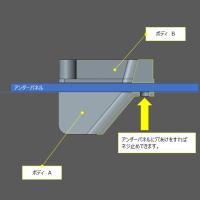 また、取り付けはアンダーパネルへ穴あけをしボディA/Bを取り付ける構造としておりますが、アンダーパネルに穴をあけたくない方は両面テープ等をご使用ください。(両面テープはご購入様にてご用意ください、アクリルフォームテープ)