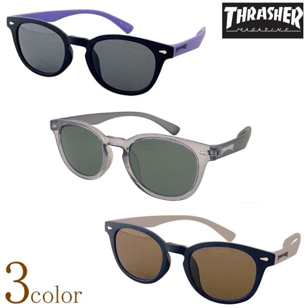 THRASHER スラッシャー 子ども用偏光サングラス おしゃれ ウエリントン型 ボストン型 キッズ カジュアル 紫外線 UVカット 偏光レンズ メガネケース付 男性用 女性用
