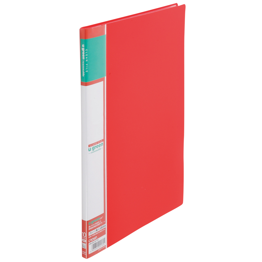 u green クリヤーファイルA4 リーズナブル A4判タテ型(10ポケット) クラウン CR-CFL10-R アカ