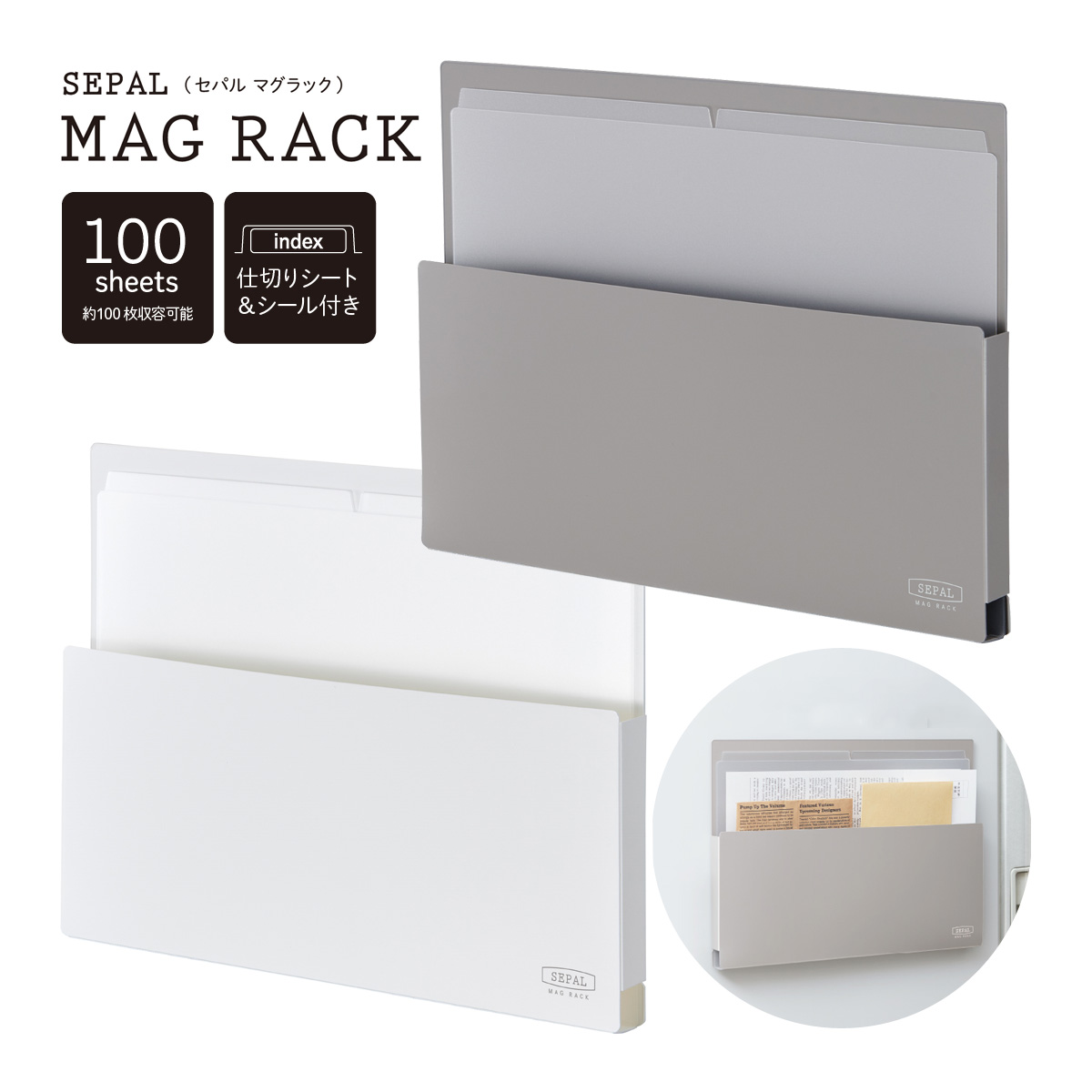 収納ラック デスク SEPAL マグラック A4 横型 冷蔵庫 玄関ドア ロッカー 貼付 マグネット 磁石 収納 整理 保管 仕分け 事務用品