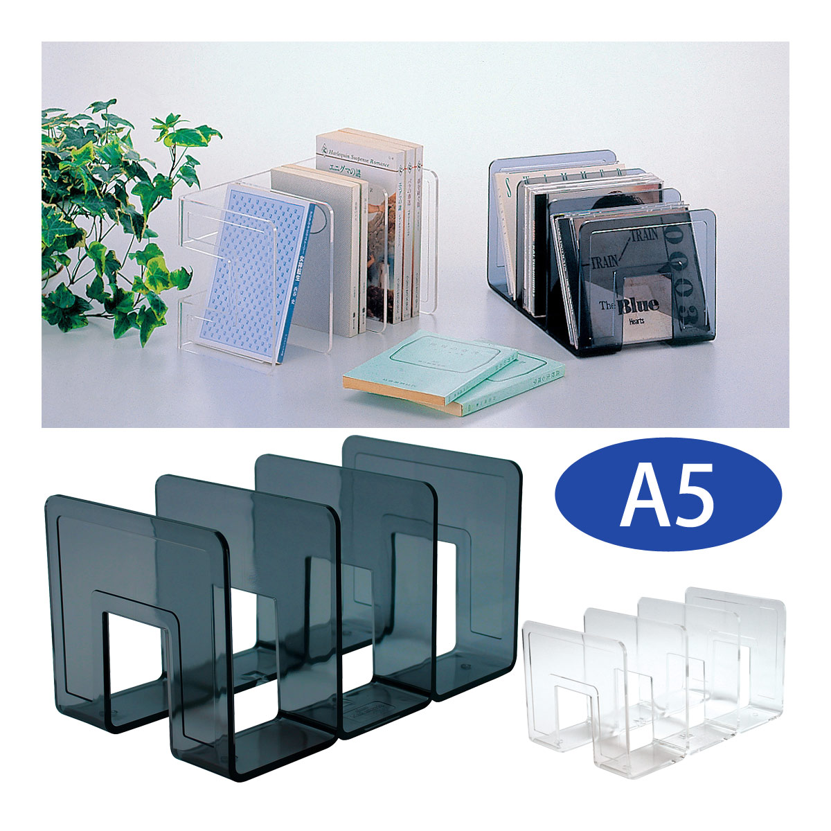 クリスタル感覚の透明カラー安定感のある美しいフォルムで、本やCDなどをしっかり支えますタテ・ヨコ自由に使えるフリータイプです。大判の書籍や雑誌・ファイルなどの整理に最適。デスクの引き出しに入れてもご使用いただけます。