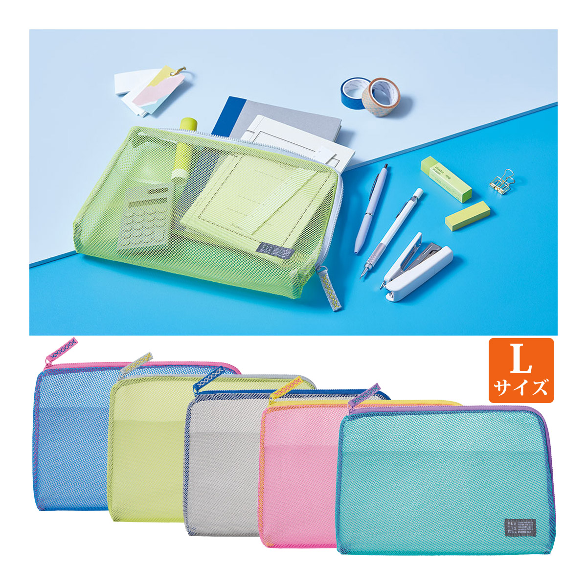 ポーチ メッシュ ファスナー 小物入れ バッグ 収納 整理 フラッティ シアー Lサイズ 軽量 おしゃれ かわいい コスメポーチ 化粧ポーチ 文房具