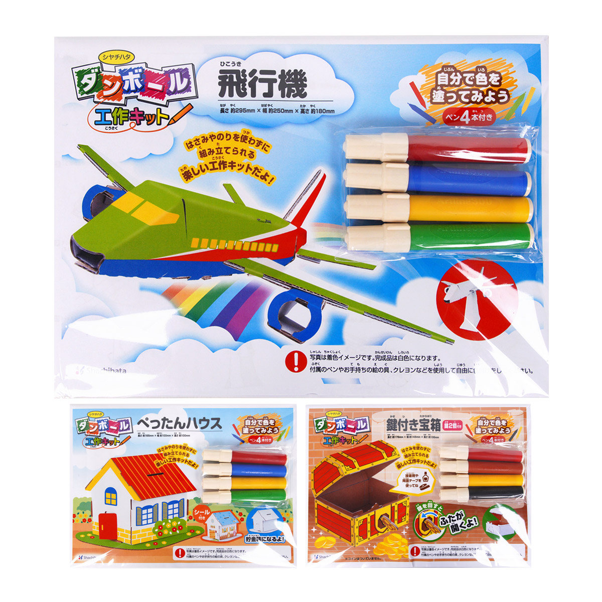 工作キット ダンボール 自由研究 小学生 飛行機 ぺったん ハウス 鍵付き 宝箱 絵 イラスト 夏休み 図工 低学年 子供 男の子 女の子 玩具 おも