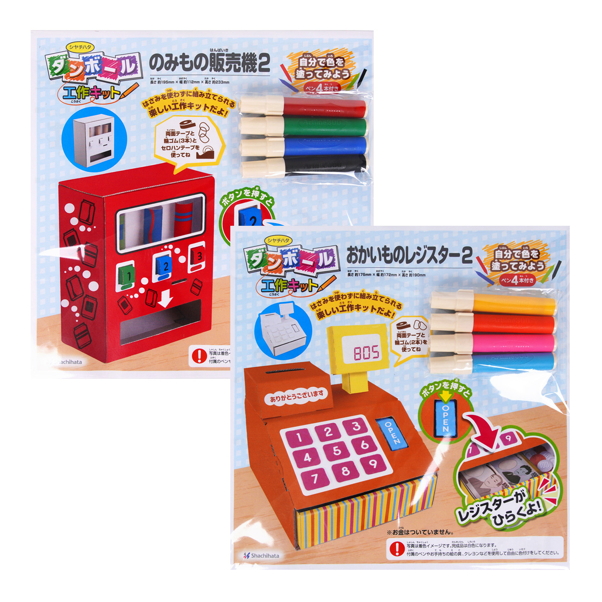 工作キットシャチハタ課題キッズデザイン作る組み立てる工作キット,ダンボール,シヤチハタ,自動販売機,レジ,小学生,自由研究,スーパー,コンビニ,レジスター,絵,イラスト,夏休み,図工,低学年,子供,男の子,女の子,玩具,おもちゃ,ごっこ遊び