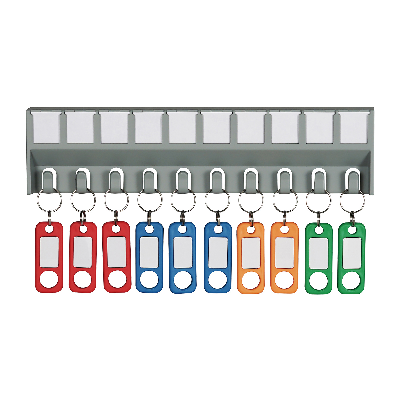 キーボックス用のキーハンガー単品です。スチール面に取り付け可能です。キーハンガー+キーホルダー(KT-10)のセット販売、スチール面に付けられるマグネット付、名前が書けるネームシート付キーハンガー グレー×1個入キーホルダー 赤×3、青×3、橙×2、緑×2個入1枚ずつ抜き差し可能なネームシート付スチール面に付けられるマグネット付でキーハンガー単体での使用が可能CKB-20/40/60/80の本体に装着可能