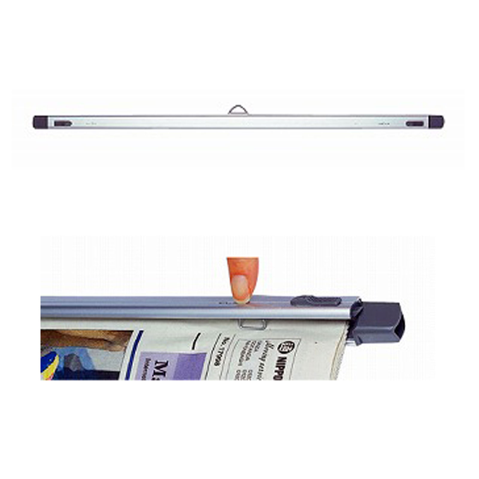 新聞綴アルミ製プッシュ式。商品サイズ:縦635mm×横33mm×高さ104mm