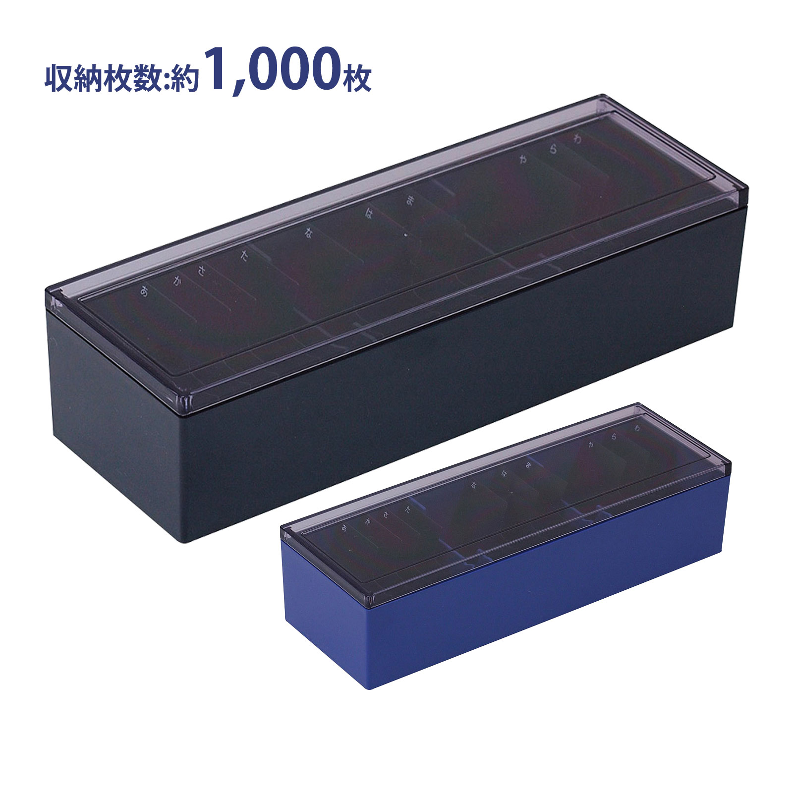 大量の名刺を素早く機能的に収納できるボックスタイプ。タテ入れにもヨコ入れにも使えます。