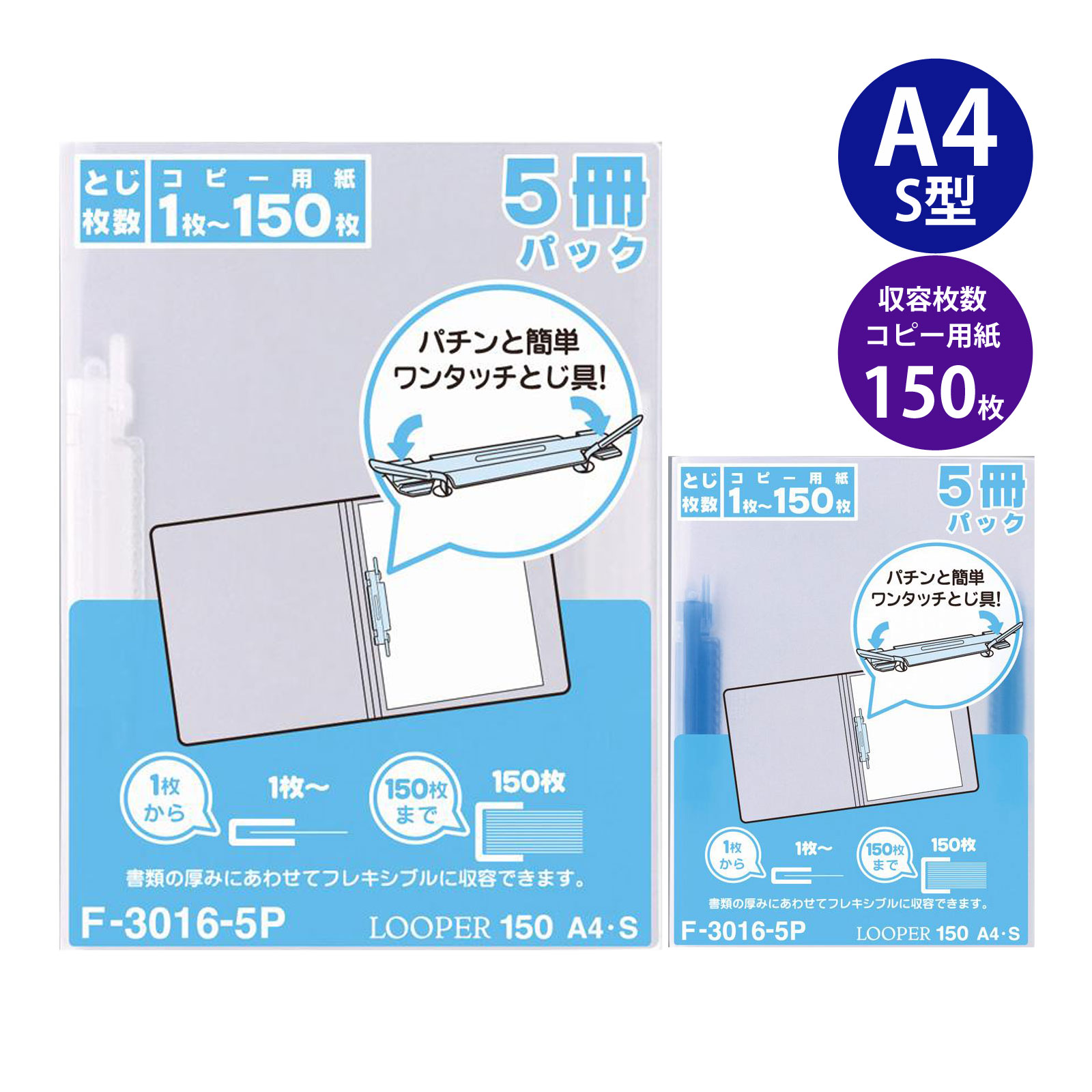 パチンと止まる新機構のとじ具を使用。1〜150枚までしっかりファイリング。0.3mm厚透明P.P.表紙なので開けずに中の書類が確認できます。
