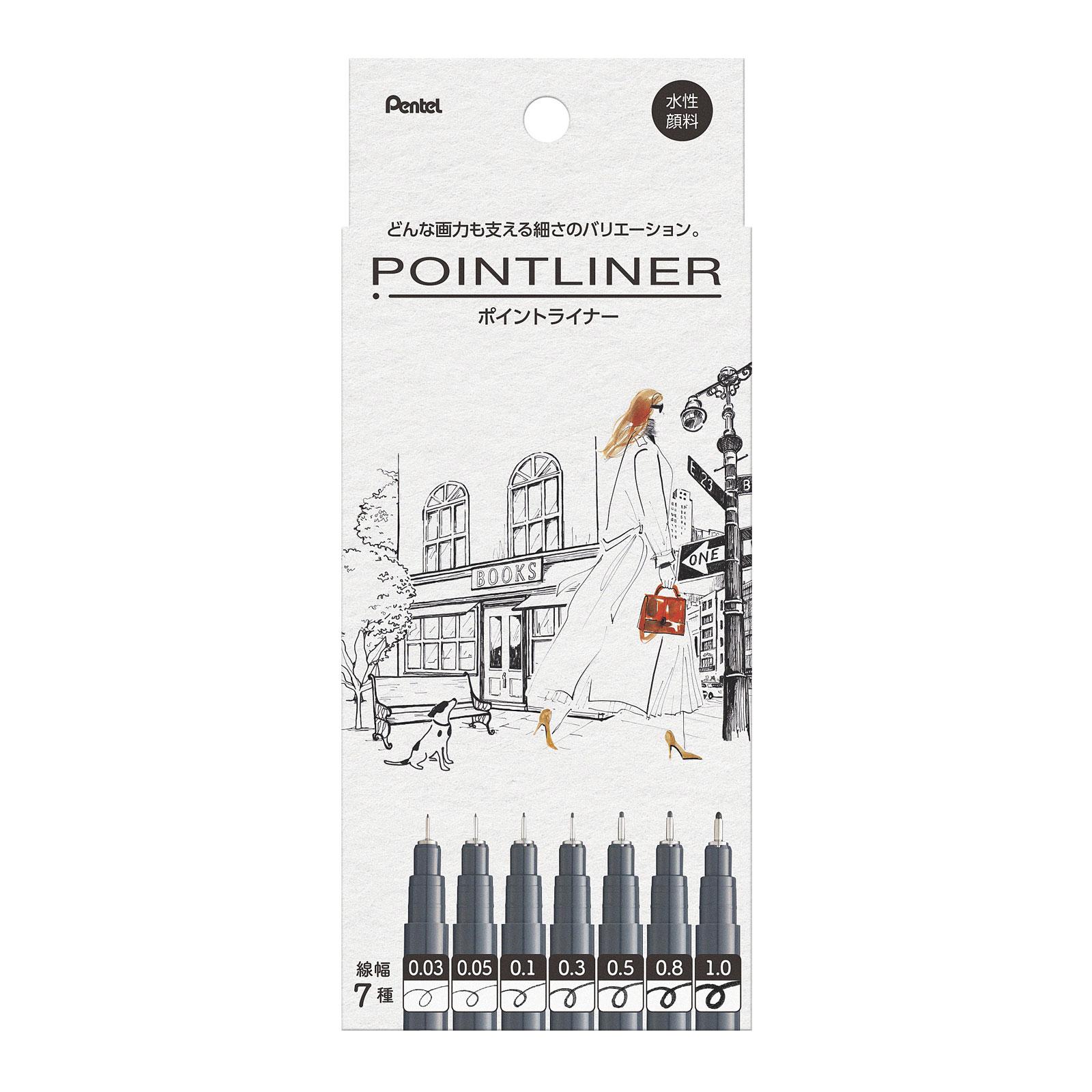 ぺんてる,ポイントライナー,ミリペン,黒,水性極細,セット,アート,イラスト,耐水水性顔料,マーカー,細描き,太描き,精密ぺんてるポイントライナー7本セット黒|極細水性マーカー0.03?1.0mmS20P-7STA