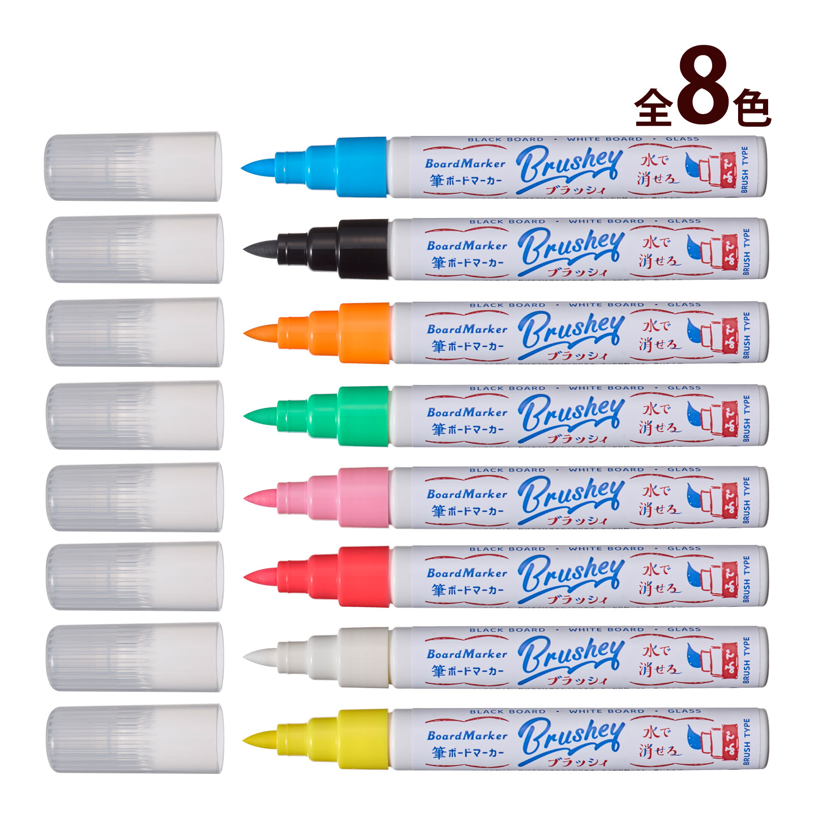 筆 ボードマーカー 8色 筆ボードマーカー ブラッシィ ブラックボード/ホワイトボード/ガラス/アクリル対応 筆文字 筆記具 事務用品 Raymay