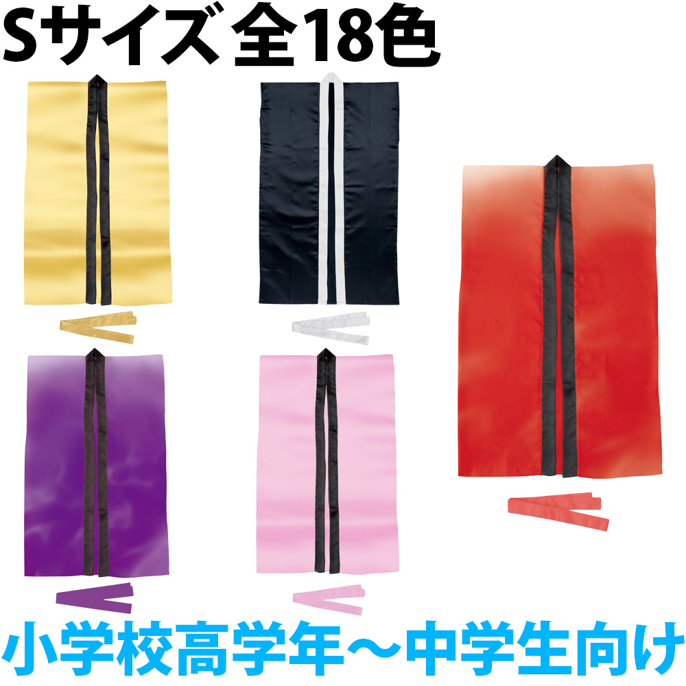 サテンロングハッピ (ハチマキ付) Sサイズ 小学校高学年〜中学生向け。サイズ(ハッピ:570×900mm、ハチマキ:1400×45mm)