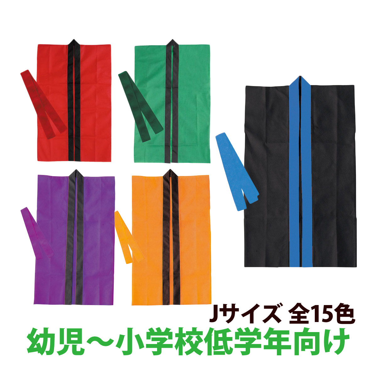 カラー不織布ロングハッピ (ハチマキ付) Jサイズ 幼児〜小学校低学年向け。サイズ(ハッピ:480×800mm、ハチマキ:1300×45mm)