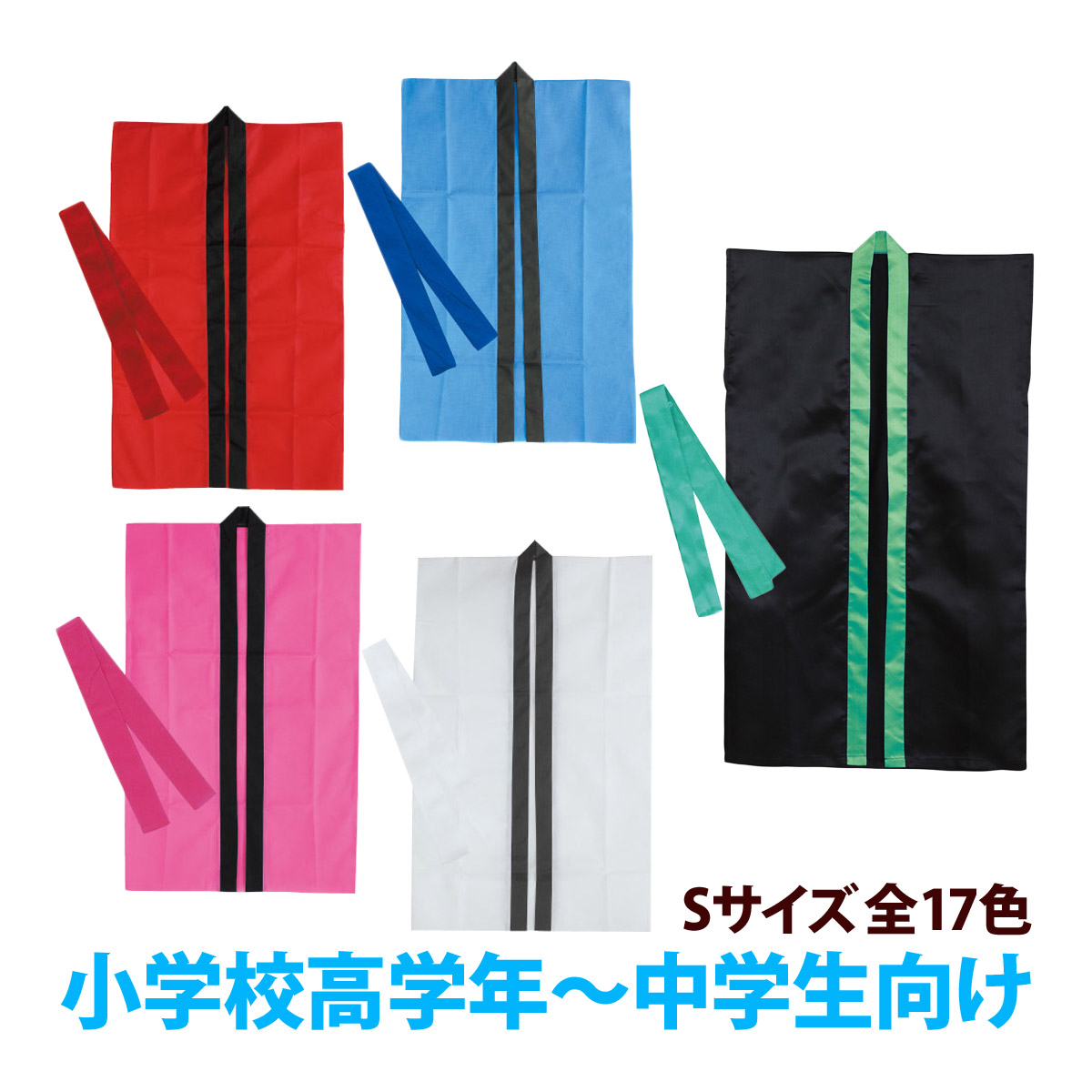 カラー不織布ロングハッピ (ハチマキ付) Sサイズ 小学校高学年〜中学生向け。サイズ(ハッピ:570×900mm、ハチマキ:1400×45mm)