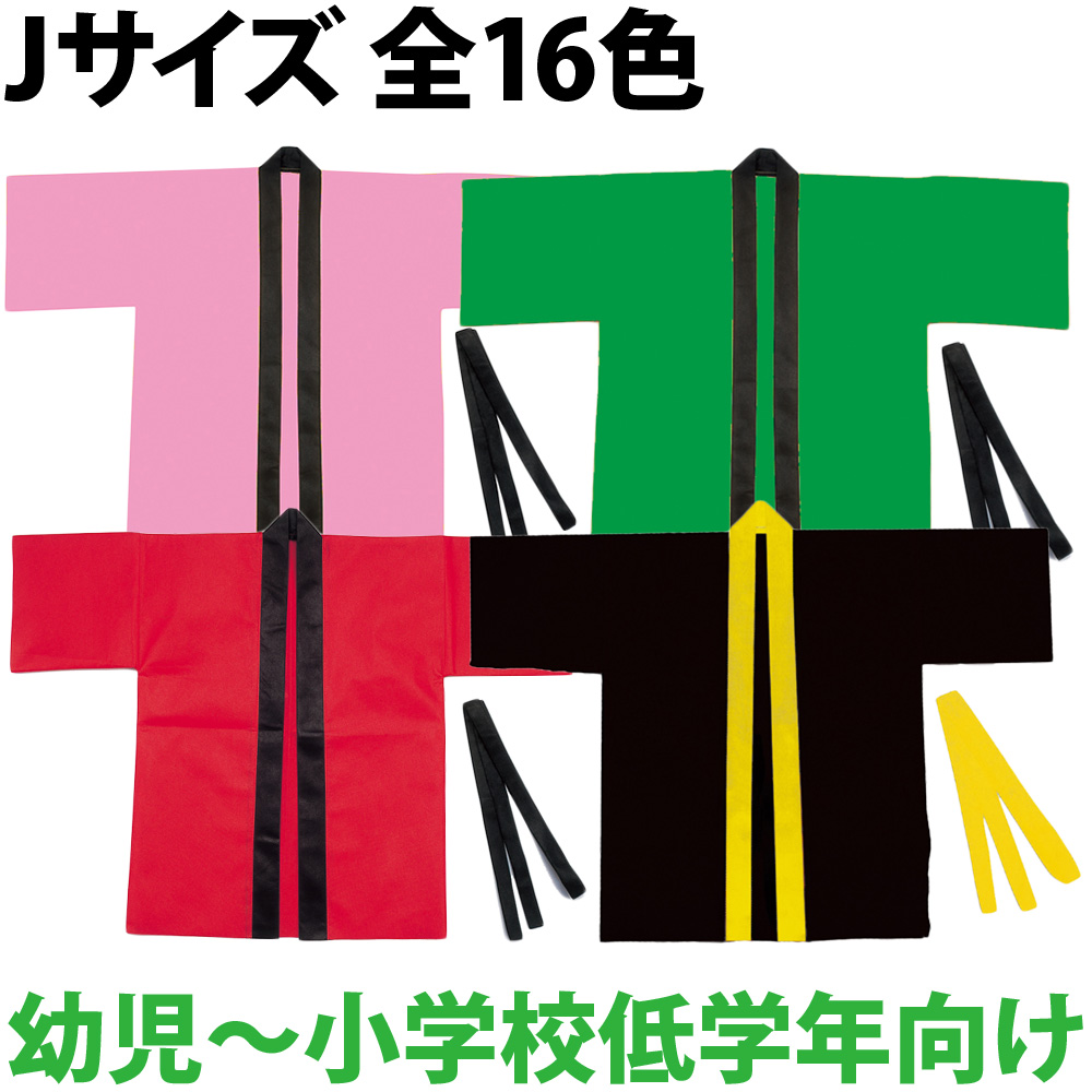 法被 子供 不織布 ハッピ (帯付) Jサイズ 幼児〜小学校低学年向け キッズ 小学生 はっぴ 祭り 運動会 体育祭 発表会 男の子 女の子 衣装