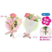 3種類の花を束ねてリボンをつけると、豪華で素敵なコサージュやブーケが作れます!裏の安全ピンで胸に飾れます。