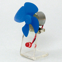 口で吹いたり送風機やうちわで風をあてての実験が行えます。プロペラに風を受ける事で発電機が回転しLEDを点灯させます。