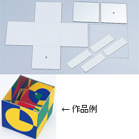 セット内容本体展開カット済(φ6mm穴あき)内面ケント紙・外面コ―ト紙(厚さ1.5mm貼合せ紙)×1ミラー(99×99×2mm)×2アクリル製(1枚はφ5mm穴あけ済)トレーシングペーパー(150×130mm)×1ボックス組立て用タックテープ×4