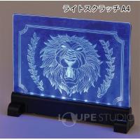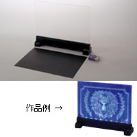 透明板をニードルなどで引っかき、イラストや文字などを描きます。スイッチを入れると青い光に輝らされたスクラッチ部分が美しく浮かびあがります。
