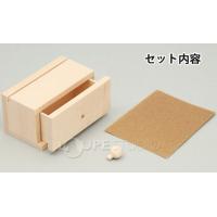 セット内容:本体(組立済) 110×64×58mm ×1、引き出し(組立済) 110×55×49.5mm ×1、取っ手 Sφ15mm ×1、サンドペーパー×1