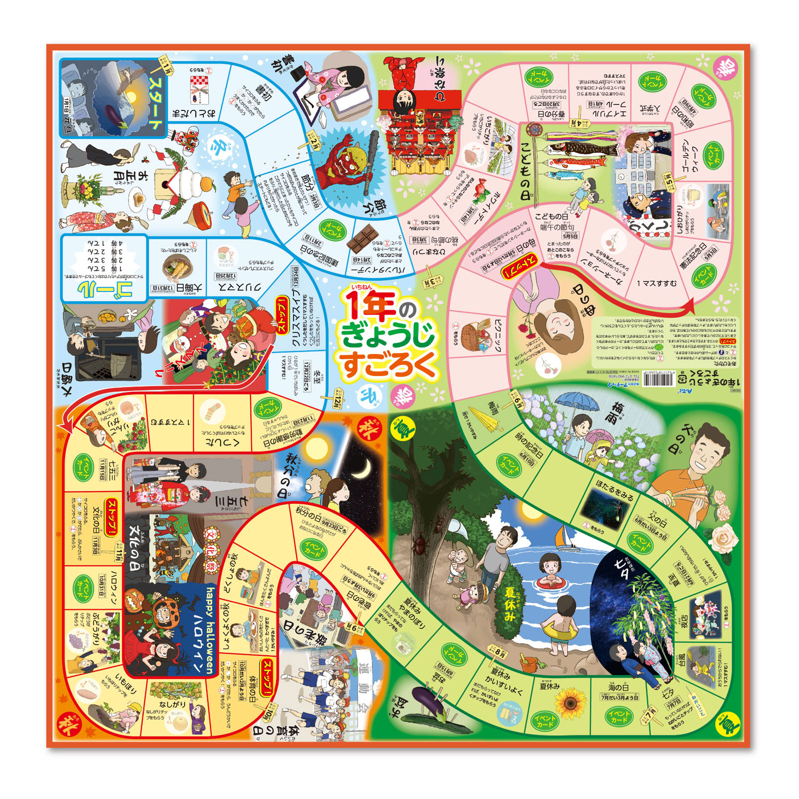 すごろく 幼児 子供 ボードゲーム 1年のぎょうじすごろく 正月 カード ゲーム おもちゃ 行事 暦 カードゲーム 小学生 季節 お受験 中学受験 室